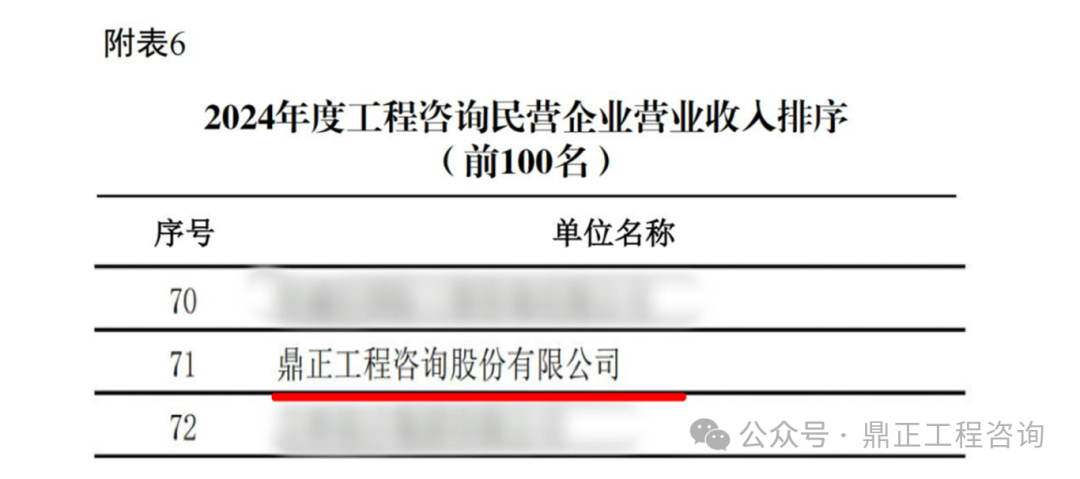 為進一步推動工程咨詢行業(yè)品牌建設(shè),規(guī)范行業(yè)行為、提高自律管理,8月21日,中國工程咨詢協(xié)會在官網(wǎng)發(fā)布了關(guān)于2024年度工程咨詢單位排序的公告。鼎正憑借穩(wěn)健的經(jīng)營實力和綜合表現(xiàn),同時榮登兩項百強榜單,位列“2024工程咨詢單位營業(yè)收入中型企業(yè)100強”第57位,以及“2024工程咨詢單位民營企業(yè)營業(yè)收入100強”第71位!